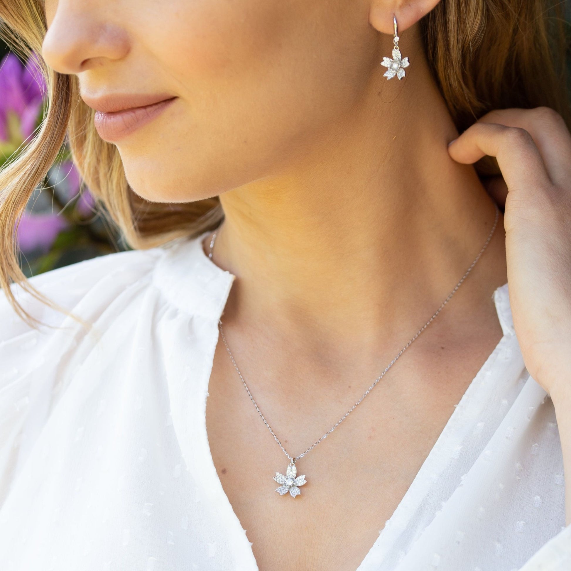 Expertly crafted from solid 925 sterling silver, each petal is sculpted with exquisite detail to reflect light with a soft, luminous glow. The result is a pair of earrings that radiates both sophistication and natural beauty.