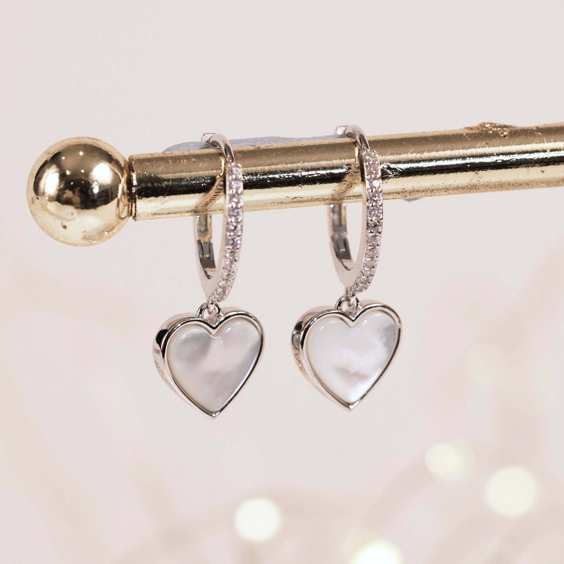 Elevate your everyday look with these refined White Quartz Heart Drop Earrings. Crafted for effortless elegance, each hoop is adorned with delicate CZ crystals for a touch of sparkle, while a natural white quartz gemstone adds serene, luminous beauty.
